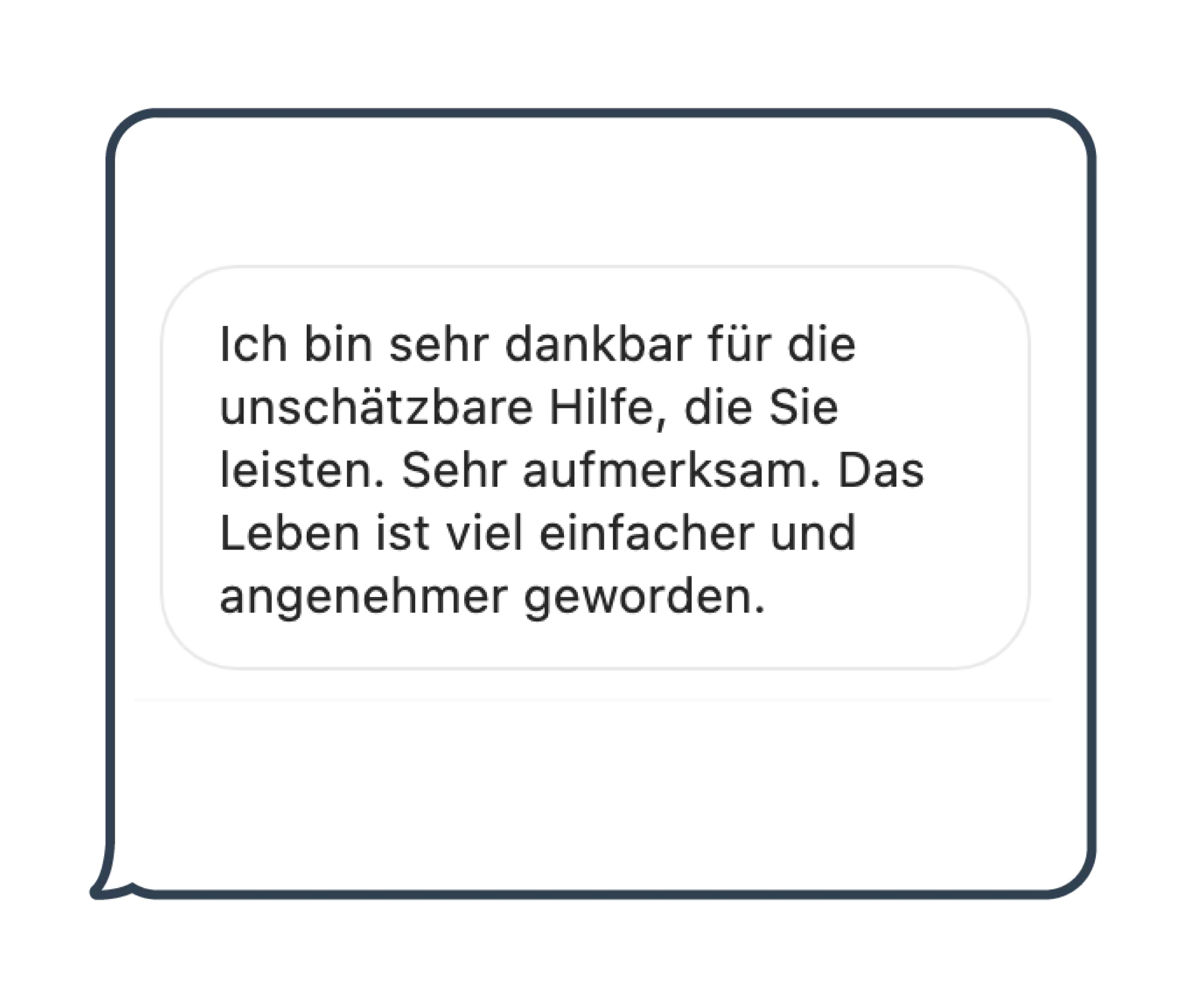 Bei uns stehen Sie als Mensch im Mittelpunkt. Wir legen großen Wert darauf, unsere Dienstleistungen auf Ihre individuellen Bedürfnisse und Wünsche abzustimmen.